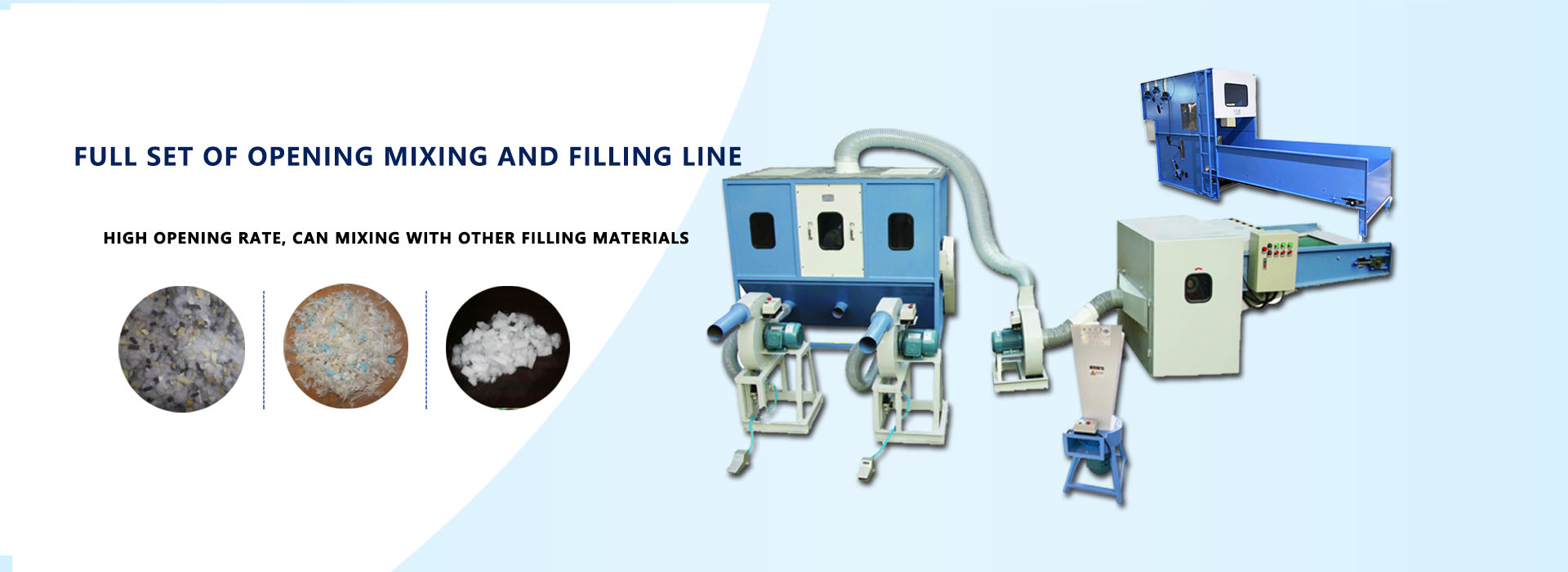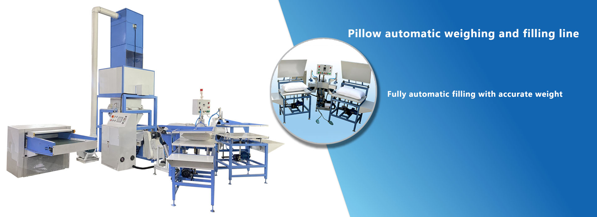 Using high tech control system and weighing sysetm, opening fiber raw material, get accurate weight, filling into pillow/cushions automatically.