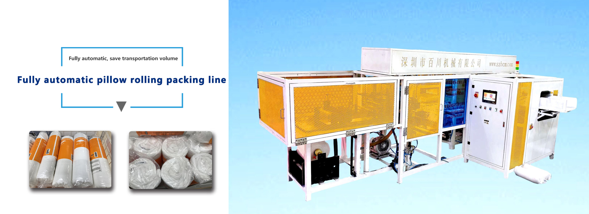 Fully automatic / semi-automatic pillow/cushion/duvet rolling packing, pillow/cushion/duvet rolling flat pressing High tech, intelligent line