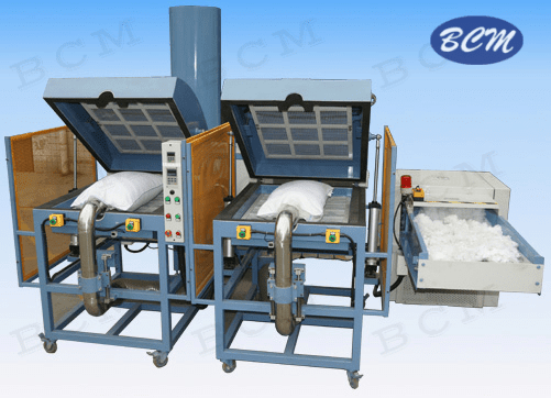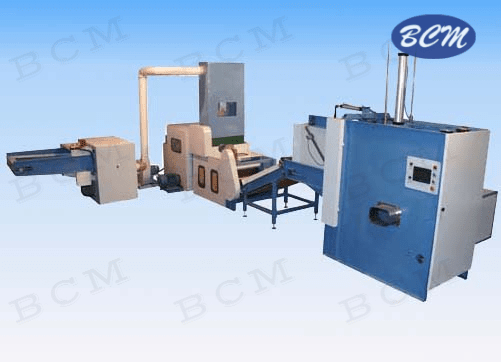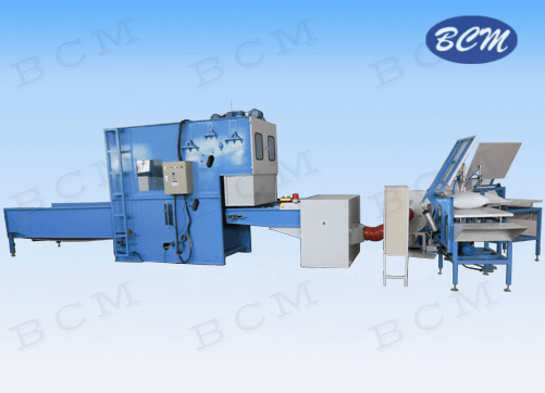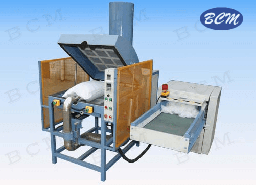Utilizando un sistema de control de alta tecnología y un sistema de pesaje, Abrir el material de fibra para obtener un peso exacto, Relleno automático de almohadas / cojines.